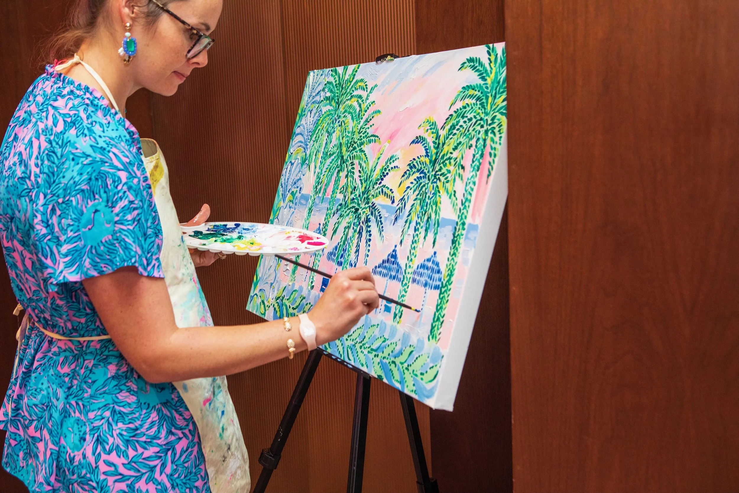 Melissa interned and freelanced for fashion brand Lilly Pulitzer’s Print Department from 2012-2014, and has remotely worked full time as their Communications Print Artist since June 2014. She paints murals in the Lilly Pulitzer store fitting rooms, paints live at brand events, and creates artwork for marketing campaigns while at home.